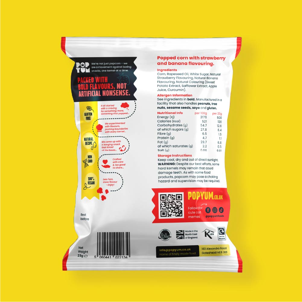 Fruit flavours that actually slap? Yes please. The Pop Yum Strawberry Banana Popcorn 12-Pack brings together juicy strawberry and mellow banana in one bold, punchy combo. It’s fruity, fun, and totally different from your standard sweet snack.